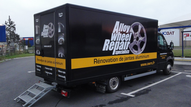 Alloy Wheel Repair, voilà comment se nomme ces spécialistes de la rénovation des jantes alu sur Rennes. En effet, mon concessionnaire Porsche VW me proposait uniquement de remplacer une de mes jantes. C’était sa seule solution, facture 425 € hors pose… voyez-vous ça !