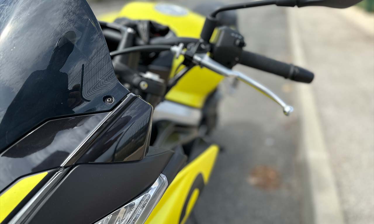 Vous cherchiez une moto pour épater les copains ? Ne cherchez plus, vous l’avez trouvée. Son petit caractère trempé lui va à merveille, je comprends mieux pourquoi tout le monde apprécie tant cette moto. La position de conduite est un peu particulière, on se retrouve les fesses coincée dans un creux derrière le réservoir, pas forcément des plus agréable à première vue mais en roulant on s’habitue. Le moteur est vif, pointue, vivement les petites routes pour s’amuser un peu. Dommage, mon modèle d’essai ne dispose pas du Shifter… ce n’est pas plus mal, c’est un coup à y laisser des plumes !