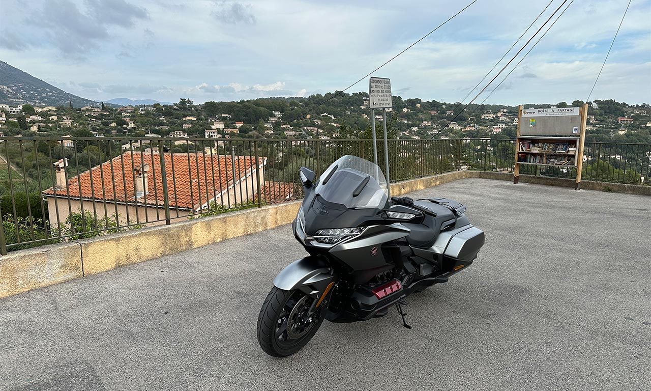 On peut le dire, ici les balades moto ne se compte pas forcément en distance parcourue mais plutôt en durée. 90 bornes pour mes amis Bretons ce n’est pas grand chose, ici dans les Alpes Maritimes c’était presqu’une balade moto de 3h… c’est vrai que je m’arrête de temps en temps pour faire des photos, mais ça n’empêche pas que ça tourne dans tous les sens si bien que la moyenne / heure / kilomètre est assez faible finalement. Pourtant, je profite pleinement de chaque instant à bord de la Gold pour apprendre à la connaître d’avantage et lui en mettre une louche un peu plus forte à chaque fois. Le couple, quelle délicieuse sensation à bord de ce monstre Japonais. Elle a la force tranquille cette Gold. Elle n’a pas forcément une puissance incroyable mais elle tracte fort et longtemps, c’est terrible. Une voiture vous colle au pneu arrière. Une sortie de virage, on met ⅔ de la poignée dans l’angle, cette voiture devient un point lointain dans les retro alors que l’on n’a pas dépassé les 3000tr/minutes… quel pied ! Le tout dans un feulement typique, on dirait presque une Porsche… j’adore !