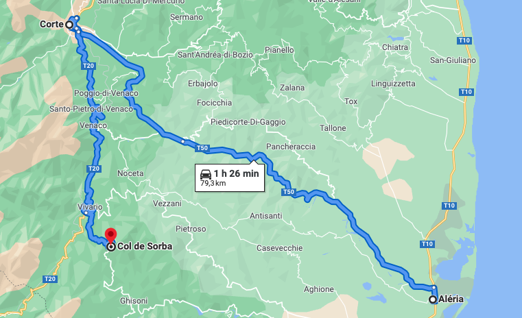 - le col de Sorba, depuis Corté et au départ d’Aléria