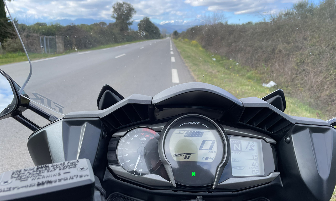 Pour vous raconter la petite histoire dans les détails, je n’ose même pas couper le contact quand je fais des pauses. Si jamais elle ne re démarre pas au moment de partir, j’aurais l’air con. Du coup, je la laisse démarrée, en priant pour ne pas caler au moment de partir. Oui, j’avoue avoir moyennement confiance envers ma moto, elle me fait des « ratés » par moment alors qu’elle est neuve, et vu mon expérience avec le Tracer9GT, je me méfie maintenant, c’est malin !