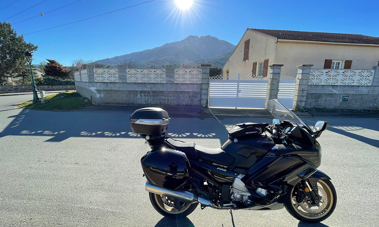 Au départ de Corte, donc, et pendant 30 minutes en direction du sud, tout se passe bien. Encore quelques lignes droites, c’est vrai mais quelques moments un peu plus techniques avec des voitures à doubler ce qui me permet de profiter pleinement du mode « S » sur le FJR. Ce mode « S », quel punch, ça change littéralement le comportement de la moto, c’est jouissif et heureusement qu’il y a ce mode sinon le FJR semblerait un peu fade, j’avoue. Mais, j’aime rouler en mode « cruising », sur le couple et tranquillement si bien que ce mode « T » reste encore et à ce jour mon mode préféré quitte à essorer vraiment la poignée comme un goret de temps en temps.