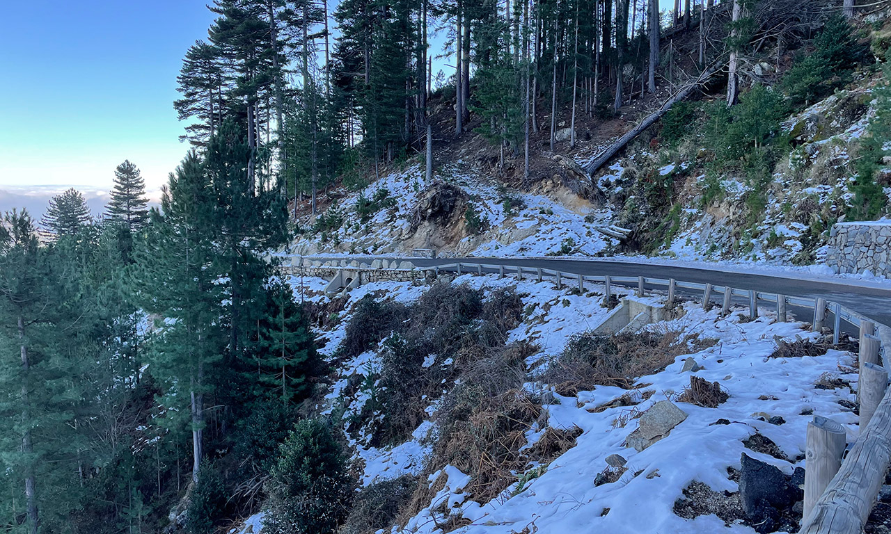 - bord de route sous la neige en Corse, dans les montagnes D69