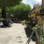 Le parking moto n’est pas adapté pour les grosses routières comme ma BMW R1250RT, moi en tout cas j’ai pas pris le risque d’aller me garer sur les graviers en contre-bas, j’ai préféré la laisser sur le bas côté de la route à l’entrée du village à une centaine de mètres de l’hôtel La Clavelière.