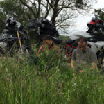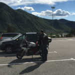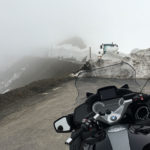 J’étais déjà venu poser mes pneus l’année dernière ici, et je me souviens qu’il ne faisait pas chaud là haut. Je profite d’un parking pour proposer aux copains de s’équiper un peu s’ils le souhaitent car là haut il ne fera vraiment pas chaud.