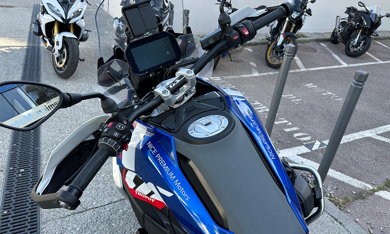 Au guidon de la GS on retrouve l’ambiance générale. La molette et les différents boutons pour une ergonomie totale, vraiment des meilleurs dans le milieu de la moto, il faut bien l’avouer. En revanche, ce support GPS est ridicule car il va encore falloir financer un GPS hors de prix qui marchera quand il voudra, bonjour le nombre de messages que j’ai eu à son sujet, ici sur Jazt.com.