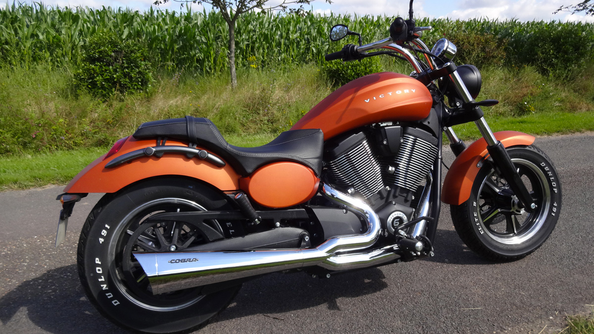 David merci ,moto prise la semaine dernière ,avec toutes les modifs faite et le selle changer pour un peut plus de confort pour madame ,je ne cherchais pas a te convaincre plus sur la victory ou une harley mais moi n’ayant eu que des japonaise full power et maintenant devenus raisonnable je me suis après un long moment de réflexion plus ou moins fais une idée de ce que je voulais comme muscle bike Victory me la concrétiser c’est tout ce que j’attendais d’un muscle bike
