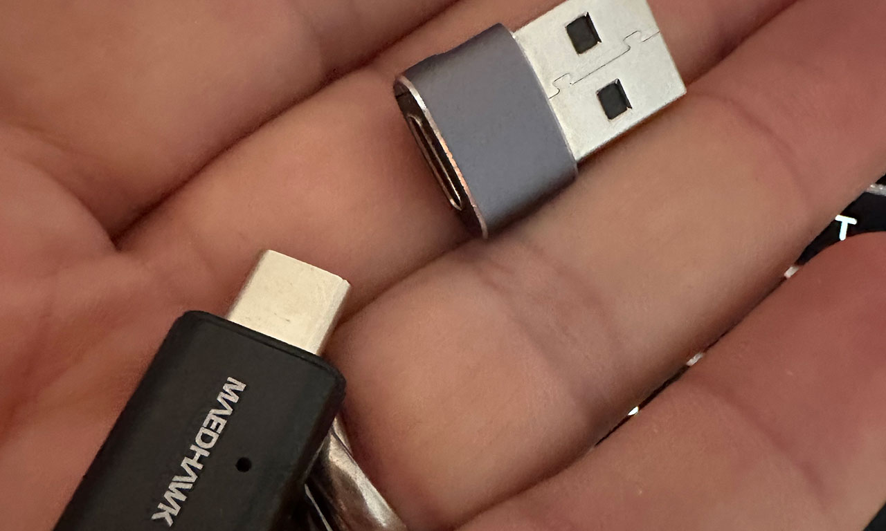 - La clé Bluetooth que je recommande est en USB-C, il faut donc un adaptateur pour la brancher à la Goldwing en USB-A