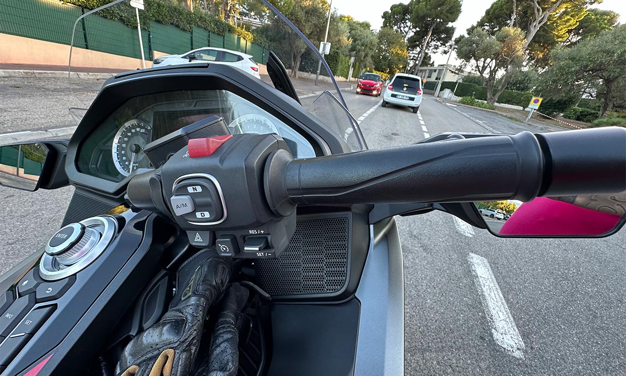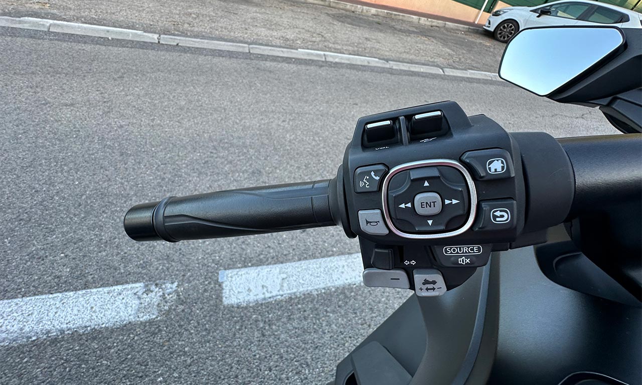 Sincèrement, tous ces boutons un peu partout me faisaient un peu peur, je me demandais comment j’allais gérer tout ça. Finalement, tout tombe exactement sous la main, on ne se mélange pas les pinceaux. Les clignotants sont mis précisément là où on les attend. On peut choisir dans les options de la moto que les clignotants s’arrêtent tout seul ou non, le top ! Je n’ai pas encore installé mon Intercom pour profiter d’Apple Car play, ça ne saurait tarder.