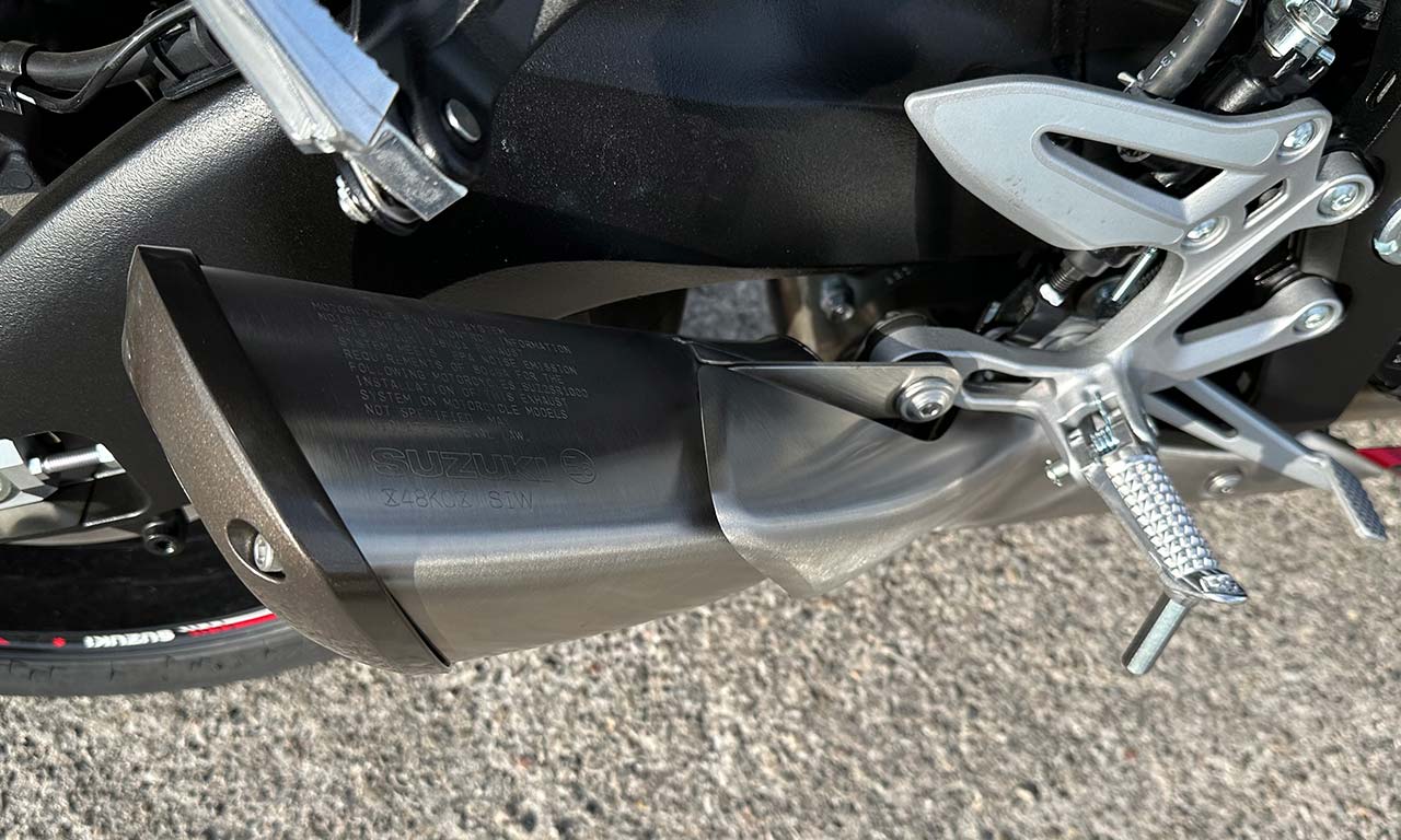 L’échappement joue pour beaucoup sur les sensations « moteur » et le plaisir de conduite. Je ne pourrais pas dire qu’il en manque avec 95cv, je dirais simplement que j’aimerais bien avoir une louche de couple en plus, plus bas, sans avoir à chercher à grimper forcément dans les tours. Un peu comme lorsque l’on roulait à l’époque sur un GSXR 750 et que l’on grimpait sur le dos d’un GSXR 1000, il y avait plus de coffre, plus de rondeur en bas dans les tours et c’est un peu ce qui me manque aujourd’hui sur le GSX S 950. J’aimerais bien retrouver cette sensation d’être poussé aux fesses, et d’avoir la sensation d’infra basse dans le bas des tours de ce 4 cylindres. A priori c’est ce qu’on ressent sur le GSX S 1000, on verra ça bientôt pour avoir pu essayer les deux motos.