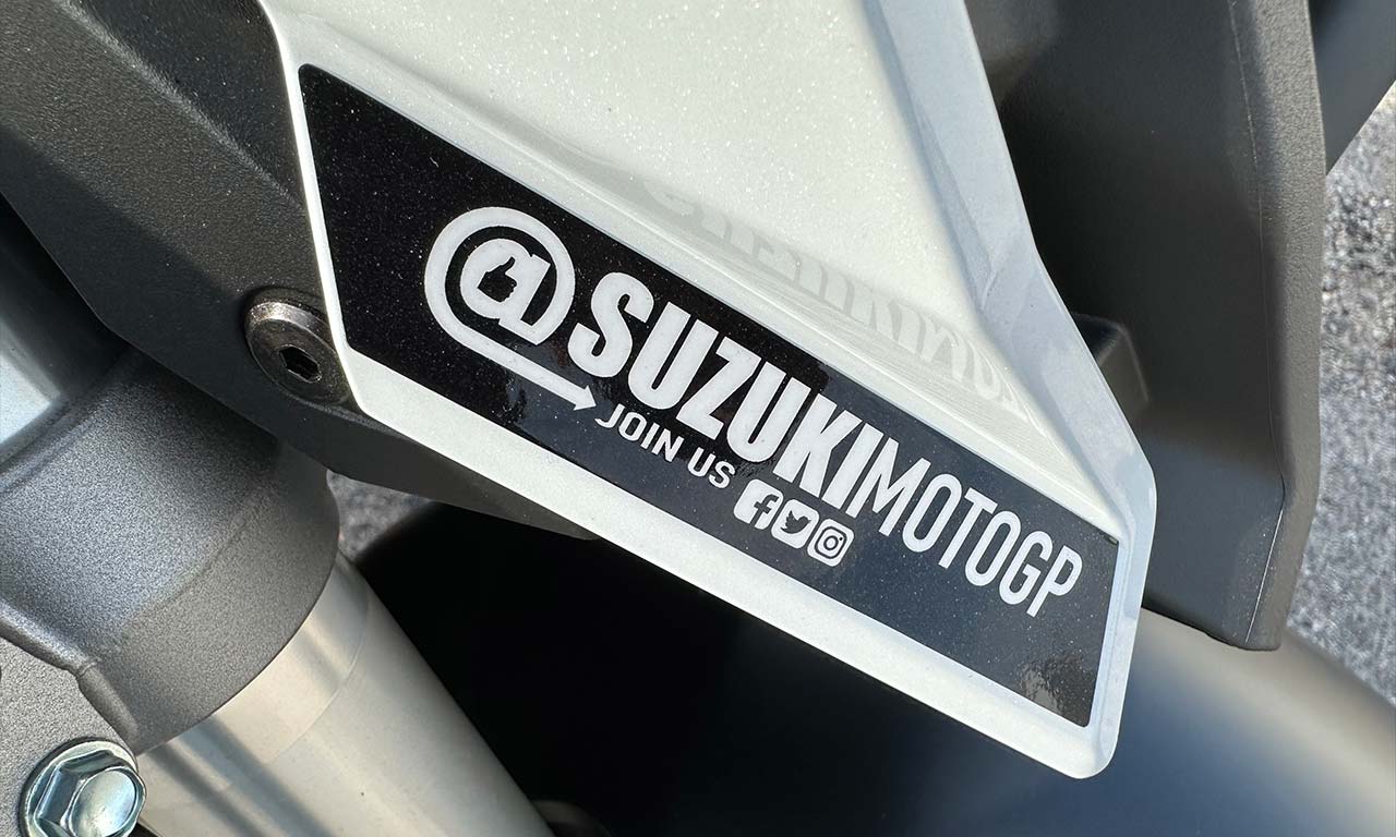 Suzuki Moto GP de quoi ? Bon, comprendront ceux qui suivent le moto gp, moi ce sticker m’a fait sourire. En fait, l’écurie Suzuki s’est retiré du moto GP cette année alors qu’ils ont été champion du monde en 2020 avec Joan Mir. C’est tout de même incroyable de se retirer d’un championnat après une si belle victoire et avec une moto relativement fiable et performante.