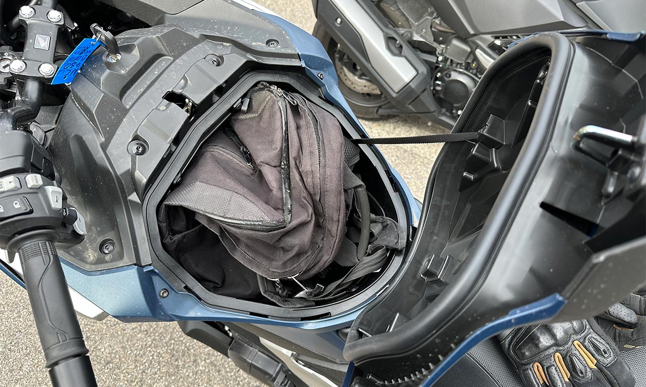 - coffre sous la selle pouvant accueillir un sac à dos motard