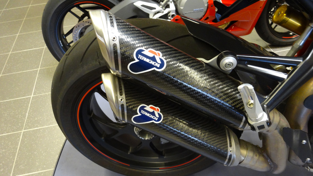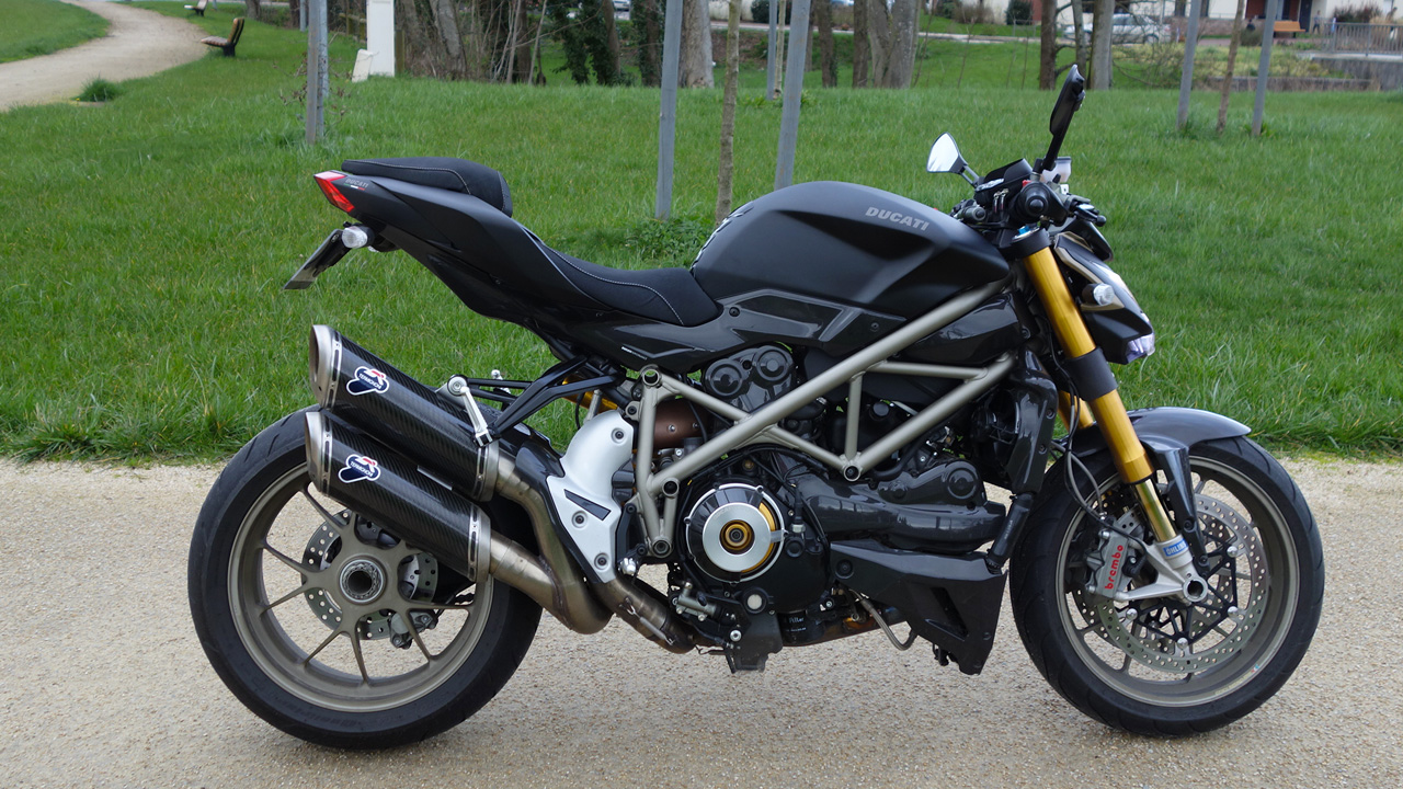 Qui se souvient de ce double échappement Termignoni sur le Streetfighter de chez Ducati. Attention, je ne parle pas du Streetfighter V4S mais du Streetfighter 1098S, pour les plus vieux d’entre nous. En même temps, y’a pas beaucoup de jeune sur mon site donc vous devez surement vous en souvenir. C’était la belle moto plutôt sportive garée à côté de votre Deauville et autre Pan European à l’époque… ça vous rappelle quelque chose ? Voici donc l’échappement Akropovic sur le R1300RS. C’est le même qu’à bord du R1300R d’ailleurs. Vous ne trouvez pas qu’il y a ressemblance ? En revanche, ne vous affolez pas, cet échappement Akrapovic est 100% respectueux des normes Euro5+, ne vous attendez pas à un son exceptionnel comme à l’époque du Termignoni. C’est terminé les motos qui font du bruit. Non, ici le concept est d’ajouter 900€ sur la facture pour un avantage esthétique surtout, rien de plus. Finalement, si l’échappement d’origine vous plait, pourquoi changer ? Nous sommes proches du zéro intérêt à tout point de vue… d’ailleurs, c’est mon point de vue ! Bon c’est vrai, c’est une bien belle pièce. Les finitions sont vraiment au niveau de mes exigences de vieux motard que je suis. Mais si à l’époque sur le S1000R l’échappement Akrapovic était de série, sur ce R1300RS ou R1300R, il faudra mettre la main au porte-monnaie.Un look de sportive, mais pas radicale