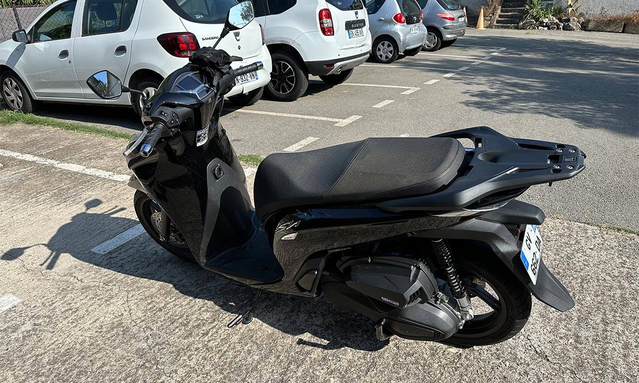 Pour se rendre en ville, c’est difficile de dire que la Goldwing est une moto « pratique ». Je pense même que le pire, c’est pour se garer. On n’ose pas se garer sur un trottoir. Il faut prévoir la marche arrière si besoin. Elle prend la place d’une voiture de type Smart, bref, la Goldwing même si je l’adore n’est pas la moto la plus pratique dans certaines situations. Du coup, petit budget oblige, sinon on se prend un TMAX et l’affaire est pliée, pratique, facile à vivre, économique et surtout qui ne soit pas volé pour garder l’esprit tranquille. Vous me dites ? SH 350i évidemment !
