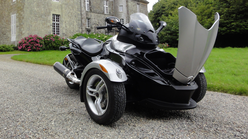 On en voit de temps en temps circuler sur les routes et pour cause, tout juste 1500 immatriculations en France. On se demande même ce que c’est que ces machins un peu spéciaux qui ressemblent à une moto et à une sorte de quad ou d’un gros scooter… difficile à savoir… Cette publicité que l’on voit à la TV me donne envie de sauter le pas par curiosité… elle laisse supposer que l’on a à faire à une moto stable, confortable idéale pour le voyage… résultat, le Spyder RS est excellent à une roue près !