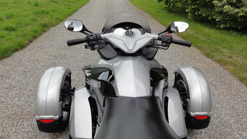 C’est moelleux, confortable et tout me tombe sous les mains et le regard. La selle est top, un véritable canapé de salon et les rétroviseurs sont larges et affichent bien ce qui se passe derrière, c’est vraiment super agréable ! Le guidon est suffisamment espacé pour pouvoir braquer à fond sans que ça vienne cogner dans les genoux. Ce guidon loin de la selle permet également de ne pas être tasser sur les reins comme sur un scooter et maxi scooter. Le tableau de bord du Spyder est ultra complet avec même l’indicateur de température extérieure, plusieurs trip’s, indicateur de rapport (bien qu’un peu petit)… Aucune vibration dans les rétro, aucune gène (coudes)… c’est un 10/10 sur le confort (on se croirait presque sur un BMW K12GT) ! Bravo car c’est rare !