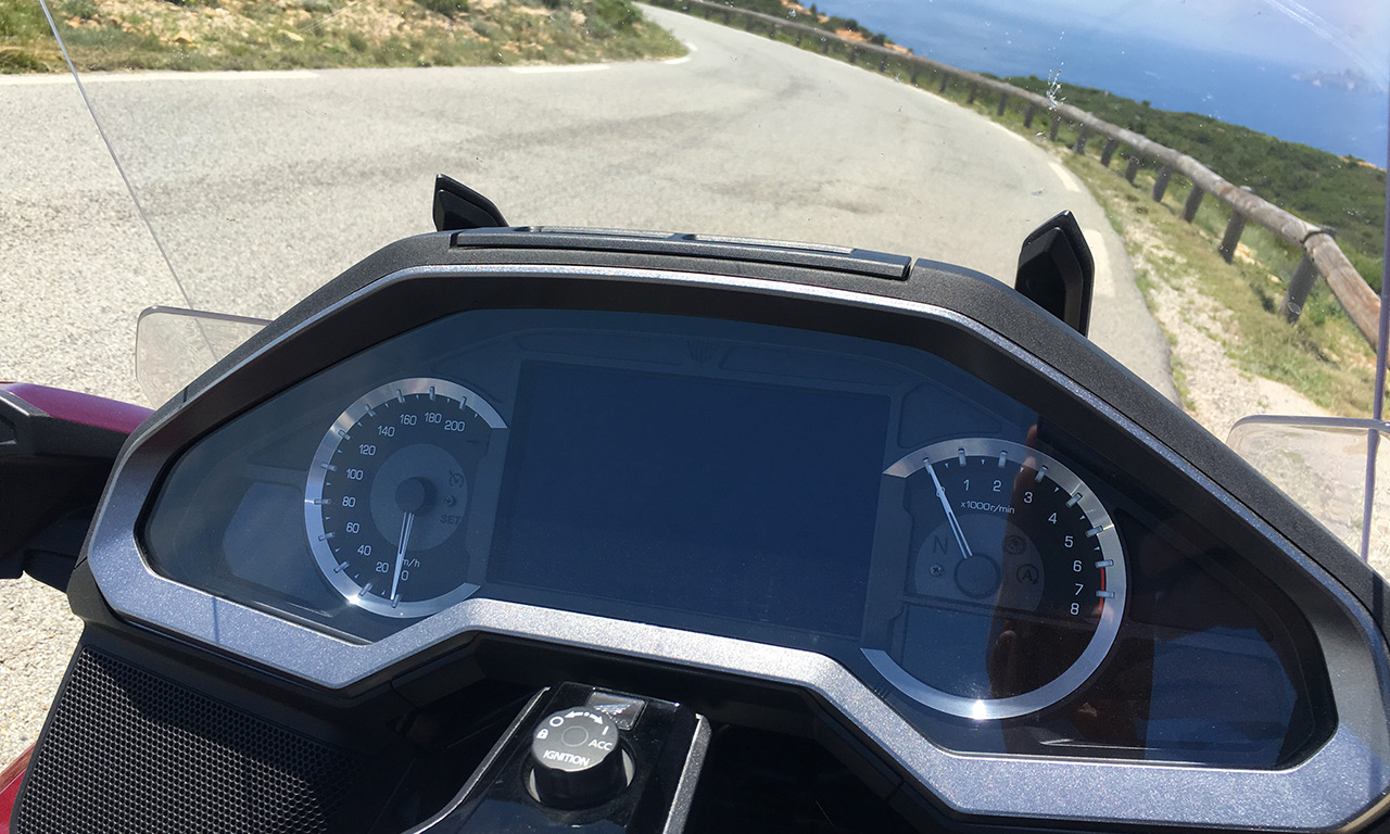 Le Goldwing est la seule moto que je connaisse qui coupe son moteur au feu rouge comme le Forza 125, le Nmax ou le PCX. Vous arrivez au feu rouge, et après un arrêt de 3 secondes, la moto coupe le moteur et reprend avec vivacité comme si de rien n’était. Au moins ça permet d’écouter un peu de musique sans aucune vibration. C’est assez plaisant même si je me doute qu’à l’usage on doit le couper car c’est peut être agaçant que le moteur se coupe et redémarre comme ça, sans cesse.