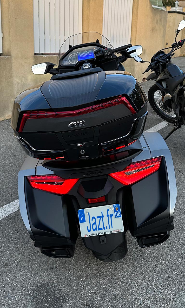 Jazt.com et David Jazt recommandent d’acheter un Top case Givi. Givi Maxia et sa contenance de 58 litres. 58 litres c’est une grande contenance dans laquelle on peut facilement transporter sur sa Goldwing dans son top case un cas de sport, un sac de voyage, une bache pour protéger sa moto, un cadenas, une chaine anti-vol éventuellement. Avec un Top Case de 58 litres il est possible de mettre deux casques l’un à côté de l’autre sans chercher à savoir dans quel sens les mettre. C’est volumineux 58 litres pour un Top Case pour autant le Maxia 58 VN n’est pas vilain je trouve, au contraire. Vous en pensez quoi ? N’hésitez pas à laisser un commentaire pour me dire ce que vous en pensez.