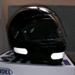 Oh merde… lui coller des bandes réfléchissantes blanches sur la tronche alors que le casque est entièrement noir, visière iridium… quel horreur ! C’est pourtant obligatoire… regarde ci-dessous un exemple du résultat !