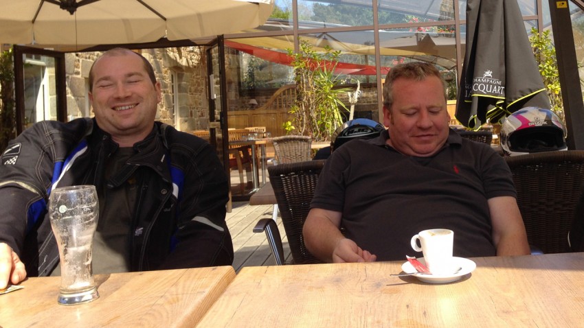 James à gauche et son SVS 1000 et Hugo à droite sur son ZZR 1400 (un petit coucou à son fils Thomas qui n’est pas là aujourd’hui… on pense à toi bonhomme !).