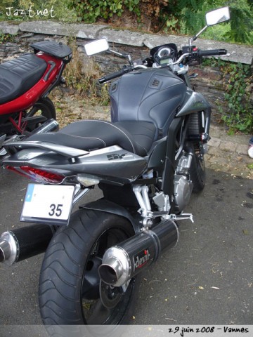 Voici le SV 1000 de Mehdi. Son pot me donne envie d’en mettre un mon Gex, car franchement ça change tout. Mais lorsqu’il me dit s’être pris 3 prunes à 90€ depuis février… ça calme ! Ici en monte d’origine vraiment moyenne, je pense qu’il s’amusera encore d’avantage sur son SV avec un BT 21 à l’arrière… voire même un BT 16…