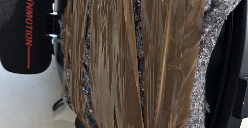 J’ai pris une couverture de déménagement et un rouleau scotch simple face pour protéger ma roue. Cette image parle d’elle même.