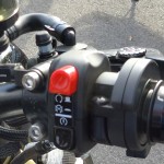 Etrange cette marque sur le compteur « motogadget » quand on connaît le prix d’une telle monture d’exception. Nous avons les totaliseurs journalier (je ne saurais vous dire d’où on les manipule !). Ce compteur a aiguille me plait terriblement, simple, blanc, superbe… il est d’autant plus superbe qu’en accélérant on croirait que c’est le compte tour… ça pousse cette Sora même si le 0 à 100 se fait seulement en 5 secondes… j’aurais bien aimé dire Gazzzzzz !! mais là… on dit quoi du coup ? Piiiiilllllleeee 🙂