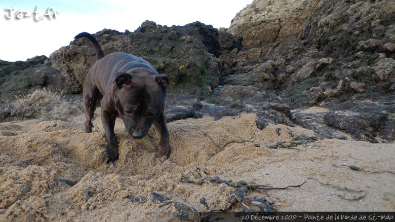 Allez, un peu de sport pour le poilu… on creuse pour rechercher le bâton enterré sans faire exprès… ou au contraire… quel jeu d’enfer pour cet entrainement au championnat du monde de creusage de trou dans le sable… on va gagner ! C’est certain, vous êtes prévenu… 😉